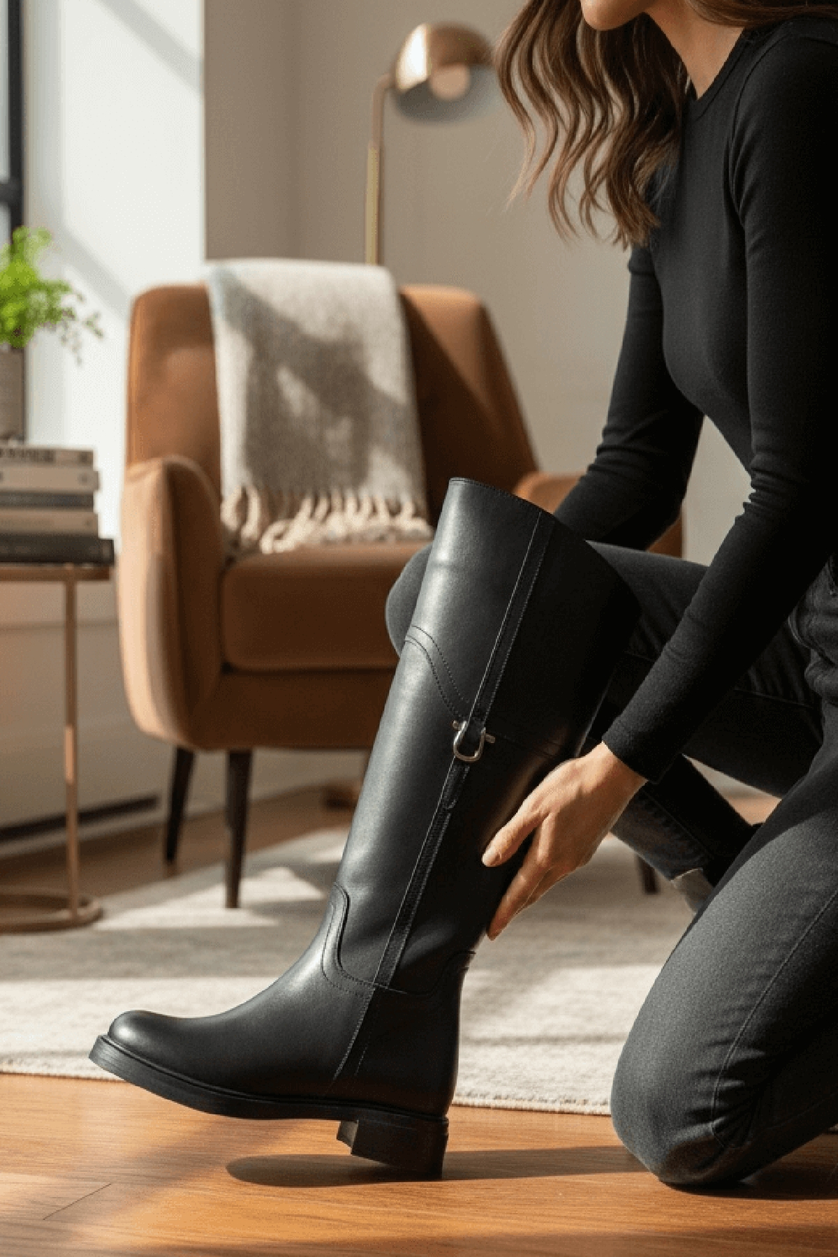 Hulbery Siyah Deri ( 3,5 Cm Topuk Boyu) Yanı Tokalı Günlük Kadın Çizme (Hulbery-03-SYHD)