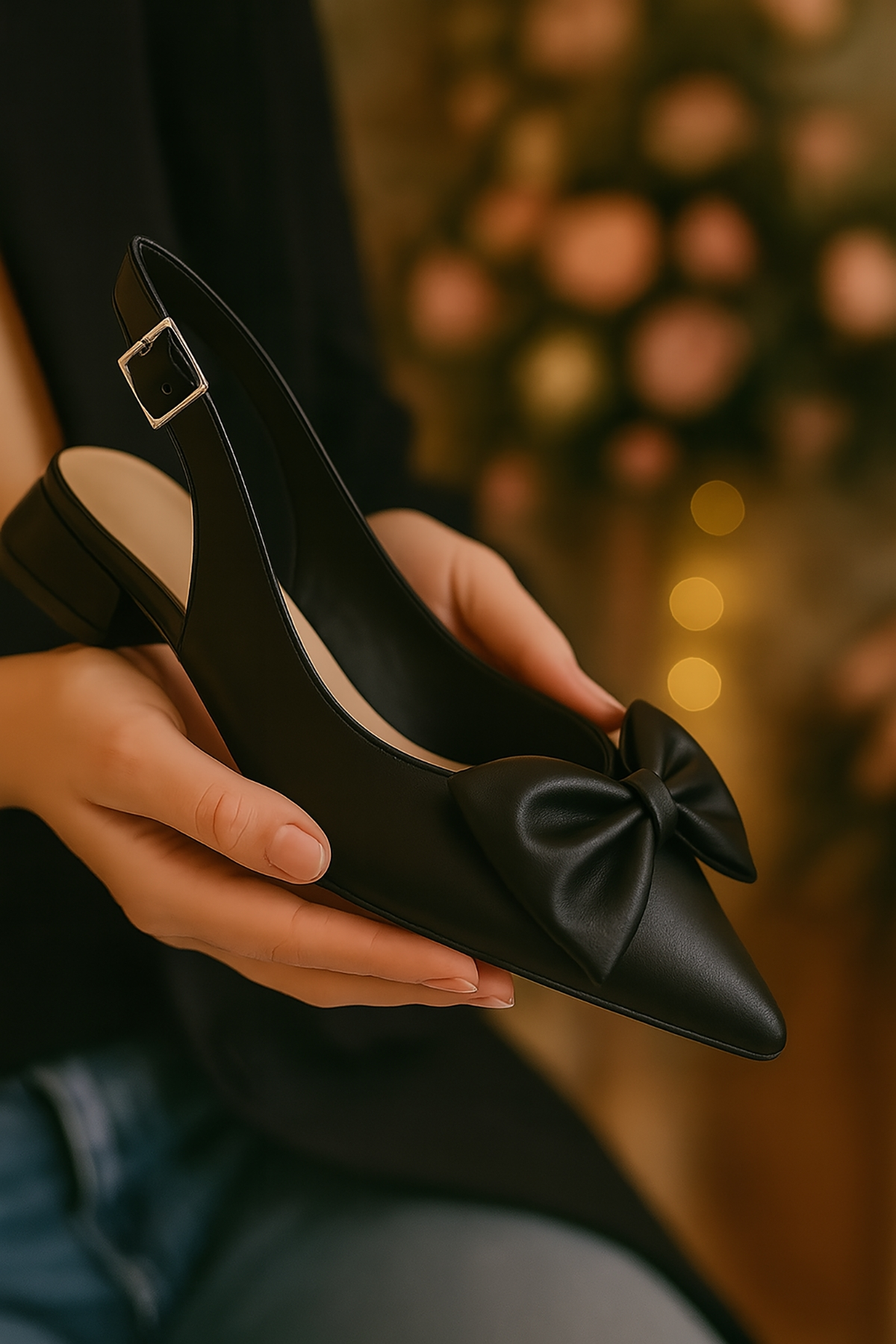İlef Fiyonklu Siyah ( 3 cm Topuklu ) Sivri Burun Topuklu Ayakkabı (İlef-03-SYH)