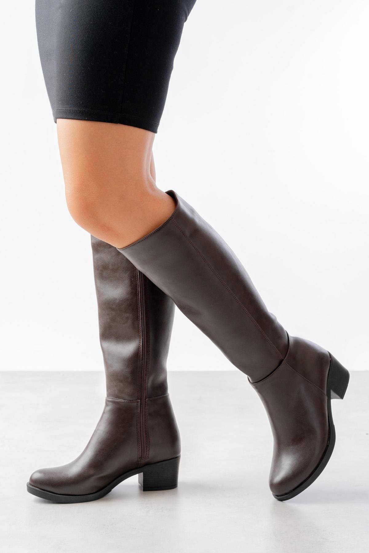 Lorida Kahverengi Deri Topuklu (5 cm) Yanı Fermuarlı Günlük Kullanım Çizme