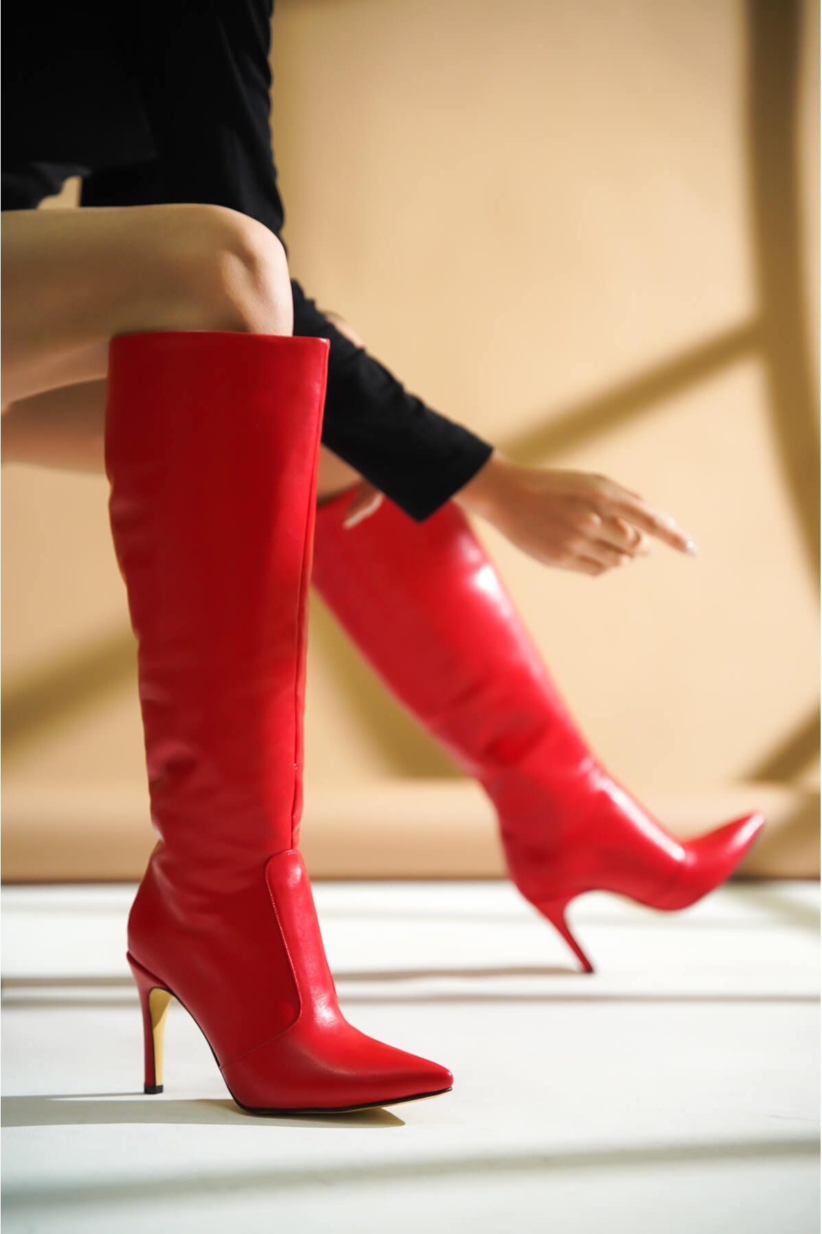 Perla Kırmızı Topuklu Çekme Günlük Kullanım Çizme (Perla-03-KRM)